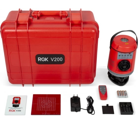 Прибор вертикального проектирования RGK V200 оснащён системой самовыравнивания, автоматически устраняющей отклонение от горизонта в диапазоне ±3°. Электронный компенсатор обеспечивает устойчивость прибора в условиях вибрации, неизбежной на стройке. Пульт дистанционного управления, обеспечивающий доступ ко всем функциям лазерного ПВП V200, обеспечивает удобство в работе и дополнительно повышает точность работы с ним.